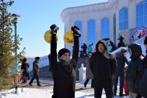 Бүгін елордалық Достық үйінің алаңында мерекелік іс-шараға қала тұрғындары мен қонақтары жиналып, бір-біріне көктемнің басталуымен және жаңаруымен құттықтады.