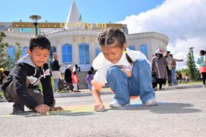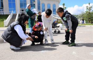 Балалар үшін «Әлем балалар көзімен» атты асфальтта сурет салу байқауы және түрлі балалар ойындары ұйымдастырылды.
