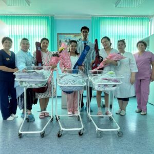 Председатель Совета матерей Ассамблеи народа Казахстана г. Астаны Алтынай Танирбергенова и руководитель КГУ «Қоғамдық келісім» при акимате г. Астаны Адильхайр Мырзаханов выразили свои теплые пожелания и первым трем новорождённым, родившимся 2 июля в каждой из больниц, подарили по домбре с логотипом АНК, а роженицам вручили по букету с цветами.