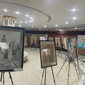 Көрмеге студенттердің бейнелеу өнерінің түрлі әдістерімен салған 35 картинок қойылды.